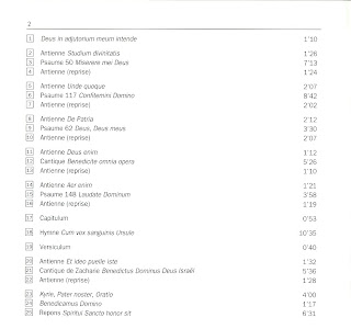 En la composición de la fiesta de Santa Úrsula, Hildegard se inspiró el ciclo litúrgico más completo. Tenemos 2 responsorios, 9 antífonas de las cuales 6 están destinados específicamente para el oficio de laudes, una secuencia para la Misa, después el Aleluya antes del Evangelio, y un himno para laudes o vísperas. Los dos responsorios podían ser cantados, ya sea como respuesta de maitines, o al final de Laudes o de tercias, para marcar la gran procesión antes de la misa, o bien al final de las vísperas. Para ayudar al oyente a restituir el trabajo de Hildegard a su contexto, decidimos reconstituir el oficio de laudes por competo para la fiesta de Santa Úrsula.